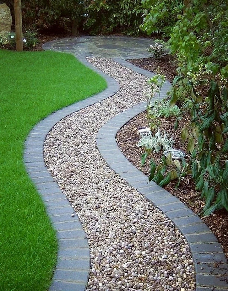 Отсыпать дорожку из гравия очень просто, но не всегда она смотрится хорошо, да и гравий может вылезать за край дорожки.