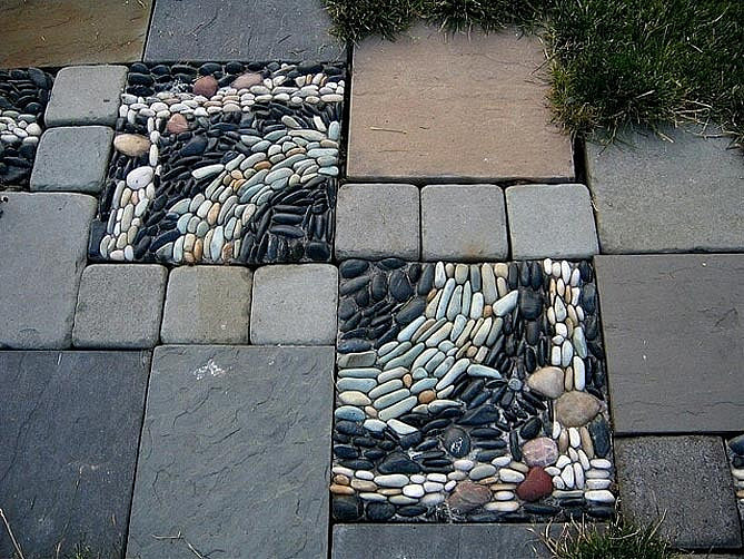 Это самый красивый и самый трудоемкий вариант дорожки. Такая дорожка не только придаст шарма вашему саду, но и станет его уникальным характером. Вы можете создать собственный узор, который будет только в вашем саду. Такая дорожка обязательно должна быть выше уровня земли, чтобы на ней не скапливалась вода