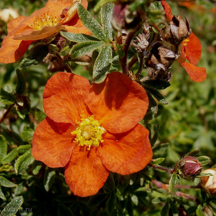 🌿Ред Айс необычайно выносливый, сильно ветвящийся кустарник, достигающий в высоту 65 см и 130 см в ширину. У лапчатки Ред Айс листья состоят из пяти, редко из трех-семи, листочков, сначала нежно-зеленых, затем зеленых с серебристым оттенком из-за легкого опушения. Первые весенние цветки оранжево-красные, летом оранжево-желтые, средней величины (3,5 см). Радует своим обильным цветением с июня по октябрь.