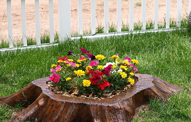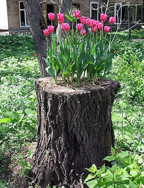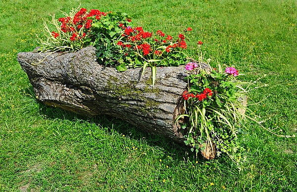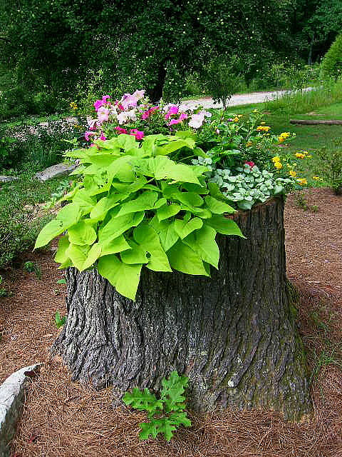 💊Прежде чем создавать такую клумбу, необходимо удалить трухлявую древесину внутри и обработать все противогрибковым средством. После вы можете снять кору дерева и пропитать ее маслами, для придания определенного цвета, а можете оставить ее естественный вид. Оба варианта прекрасно смотрятся! Далее дело за малым, заполнить полость внутри землей и высадить туда растения.