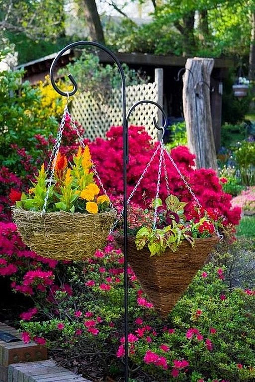 🌼Подвесные кашпо это отличный способ вертикального озеленения без дополнительных опор вроде шпалер, арок и патио. Чаще всего кашпо развешивают на веранде, как и в случае с вазонами, чтобы объединить сад и дом. Уместны кашпо будут и в беседках. Более того вы можете создать удивительные композиции, повесив их под раскидистым высоким деревом.