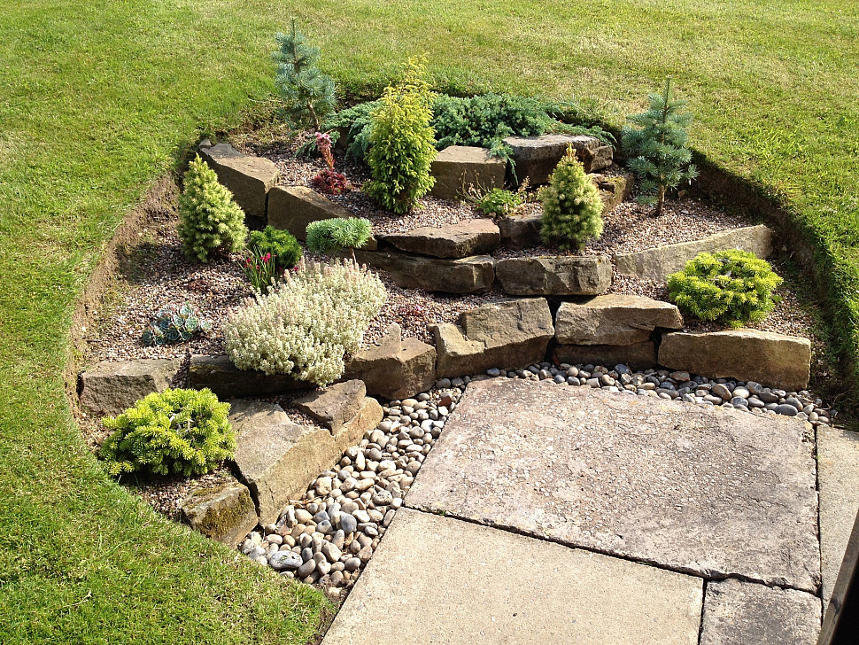 Это вариант малоуходного цветника. Ведущую роль в нем занимают камни и валуны разного размера. В дополнение к ним высаживают очень малое количество неприхотливых растений, обычно хвойных. Такой цветник обладает всесезонной декоративностью и абсолютно не требователен в уходе!