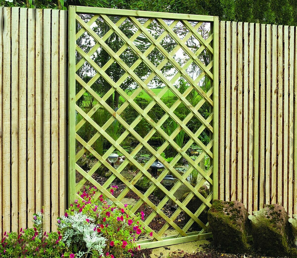 Для ландшафтного дизайна лучше всего использовать акриловое зеркало. Оно изготавливается из пластика, оргстекла и отражающего слоя акрила. Такие зеркала гораздо прочнее обычных, а также отлично переносят температуры от -40 до +80 градусов по Цельсию.